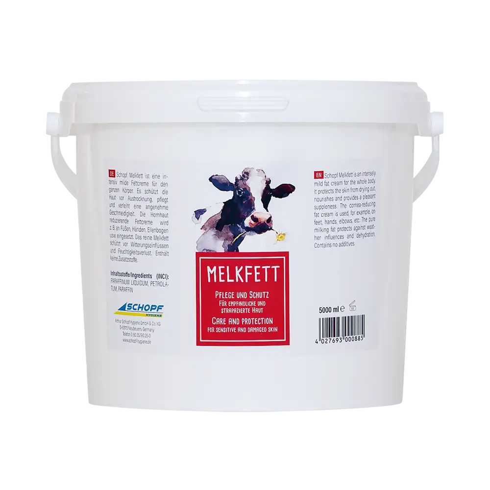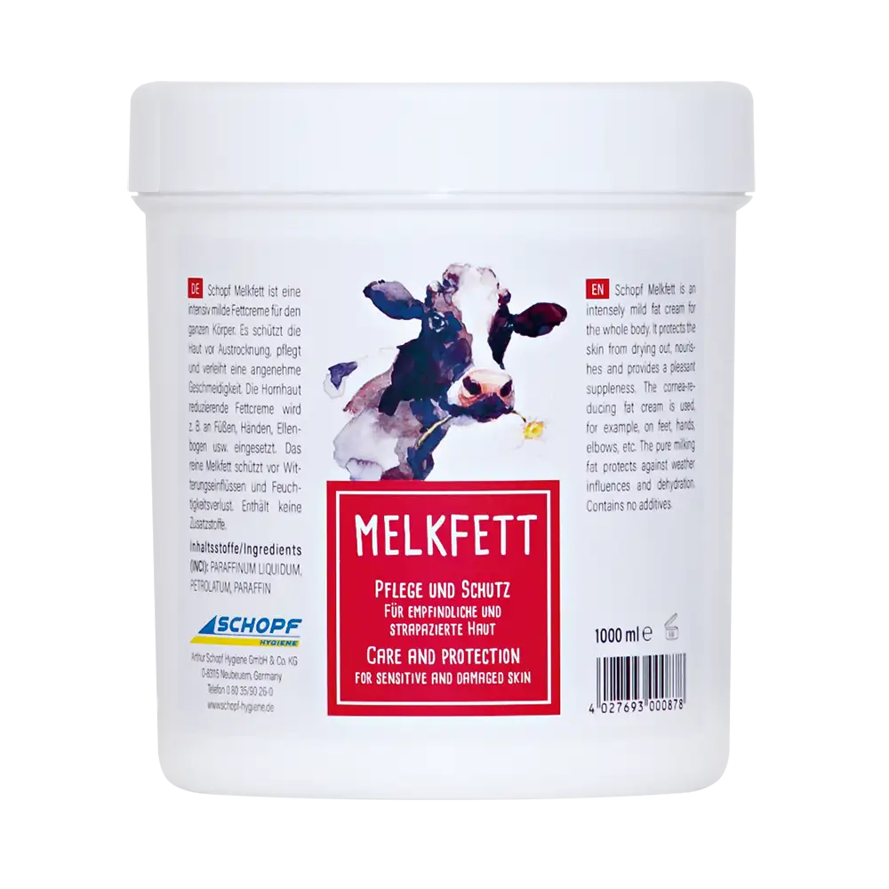 Milking fat is a natural preparation for udder care that is increasingly being used in human body care. The product is deliberately manufactured without additives.