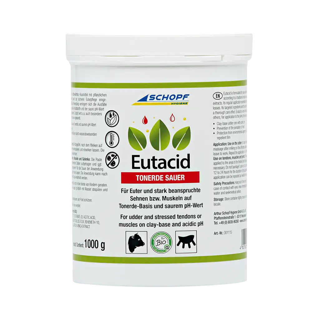 Eutacid Tonerde ist ein altbewährtes Hausmittel mit pflanzlichen Extrakten und wird zur sicheren Euterpflege eingesetzt. Durch regelmäßige Anwendung verringern sich die Ausfälle wesentlich.