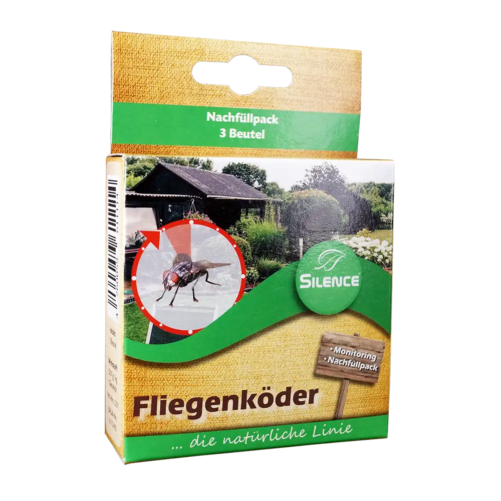Die Silence® Fliegenfalle lockt störende Fliegen mit einem speziellen Lockstoff in den Fallenkörper, aus dem sie nicht mehr entkommen können. Sie reduziert damit die Belästigung im Terrassen- und Gartenbereich und verringert das Risiko der Übertragung von Krankheitserregern.