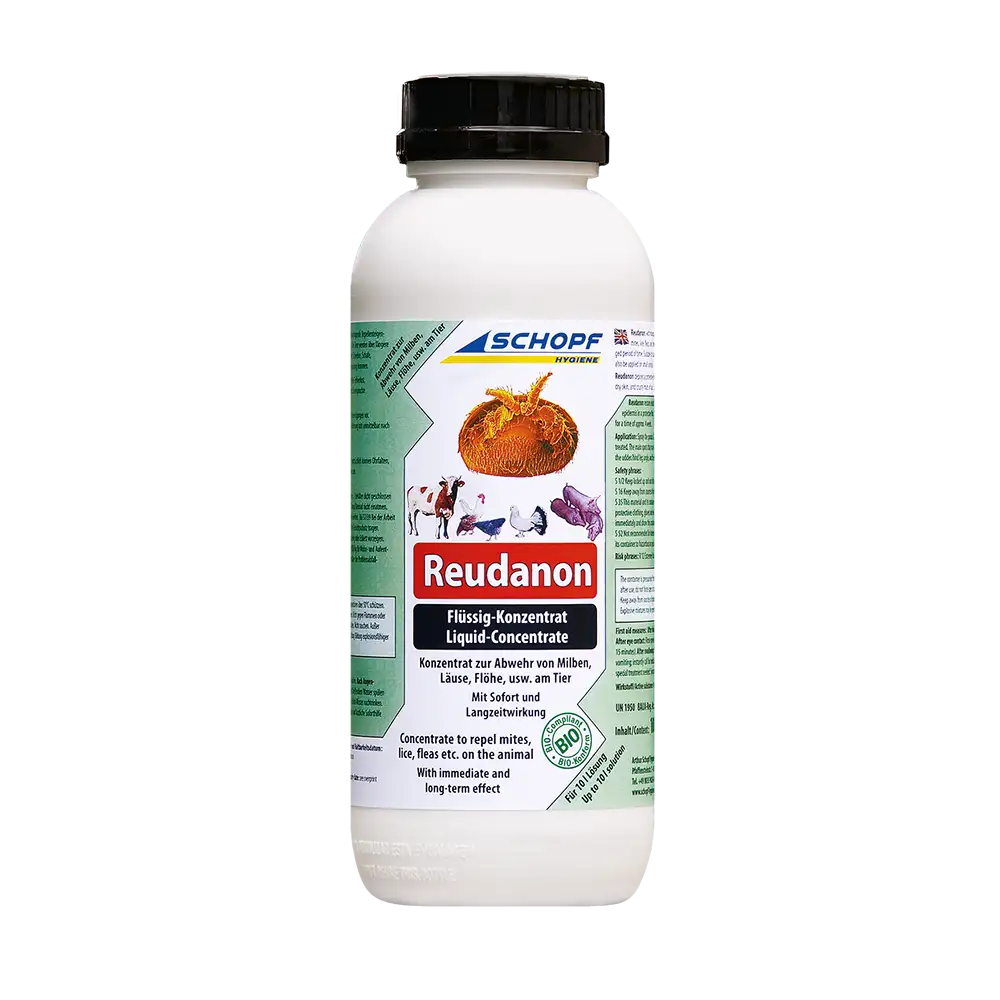 Reudanon Konzentrat nutzt den Wirkstoff Geraniol und besitzt hervorragende Repellenteigenschaften gegen Milben, Läuse, Flöhe und Haarlinge. Die Anwendung hält Tiere über längere Zeit von Parasiten frei und wirkt gleichzeitig pflegend bei Fellverlust, trockener Haut und verkrusteten Stellen.