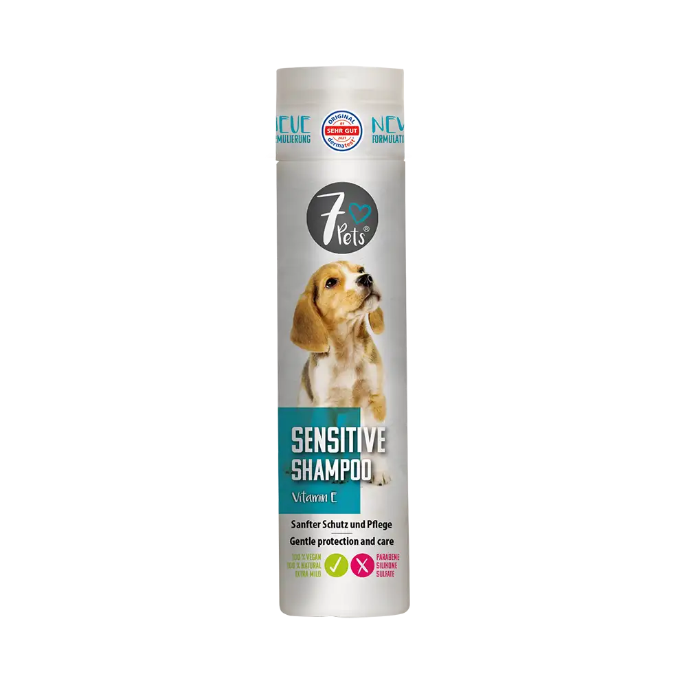 Sanfter Schutz und Pflege 7 Pets Sensitive Shampoo wurde mit ausgewählten, sehr milden und reizarmen Tensiden aus nachwachsenden Rohstoffen entwickelt. Wertvolles Aloe Vera und Vitamin E pflegen und reinigen mit hervorragendem Schaumverhalten besonders sanft empfindliches Welpenfell und Tiere mit sensibler Haut. Juckreiz durch trockene Haut wird somit vermieden. Der pH-Wert des Shampoos ist der Hundehaut angepasst und sorgt für eine hervorragende Verträglichkeit. Leicht biologisch abbaubar und frei von künstlichen Farbstoffen.