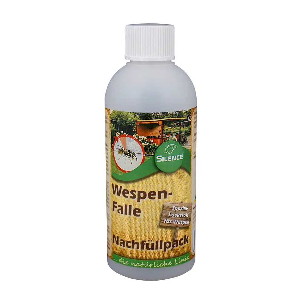 Die Silence® Wespenfalle lockt störende Wespen mit einem speziellen Flüssiglockstoff in den Fallenkörper, aus dem sie nicht mehr entkommen. Das Fernhalten von Wespen reduziert das Risiko von Stichen, die bei Allergikern oder empfindlichen Personen lebensbedrohlich sein können.